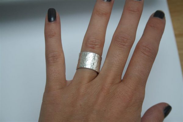 Je vingers kunnen door warmte dikker worden en door kou dunner. Zeker bij zo’n brede ring is het goed hier rekening mee te houden. Ik raad aan een halve maat groter te kiezen dan je normaal gesproken hebt. Het beste is je ring op te laten meten. Mocht je in de buurt van Haarlem wonen, dan kun je dit door mij laten doen. Stuur dan even een mailtje. Zo niet, dan raad ik je aan dit bij een juwelier te doen en aan te geven dat de ring 12mm breed is.