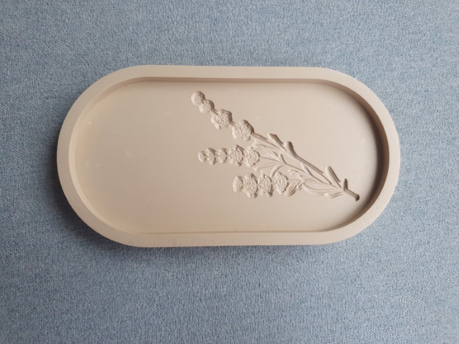 – Het schaaltje is gemaakt van Jesmonite. Dat is een composietmateriaal op waterbasis. Het is veilig in gebruik en bevat geen oplosmiddelen en VOC’s. Het is dus niet giftig.