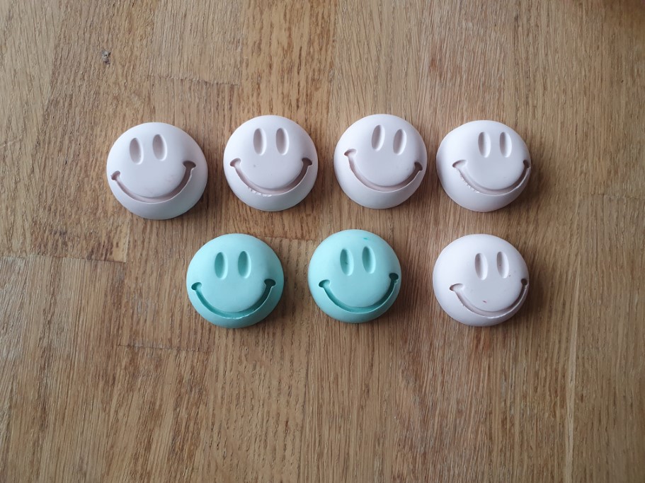 – Deze leuke smiley wordt met de hand gegoten. Hierdoor kunnen er oneffenheden, kleurverschillen of luchtbellen te zien zijn. Dat maakt elk item uniek.