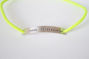 ♥ De letters worden met de hand letter voor letter in het materiaal geslagen, hierdoor zullen de letters niet kaarsrecht naast elkaar staan en zullen ze misschien niet allemaal even diep erin geslagen zijn.